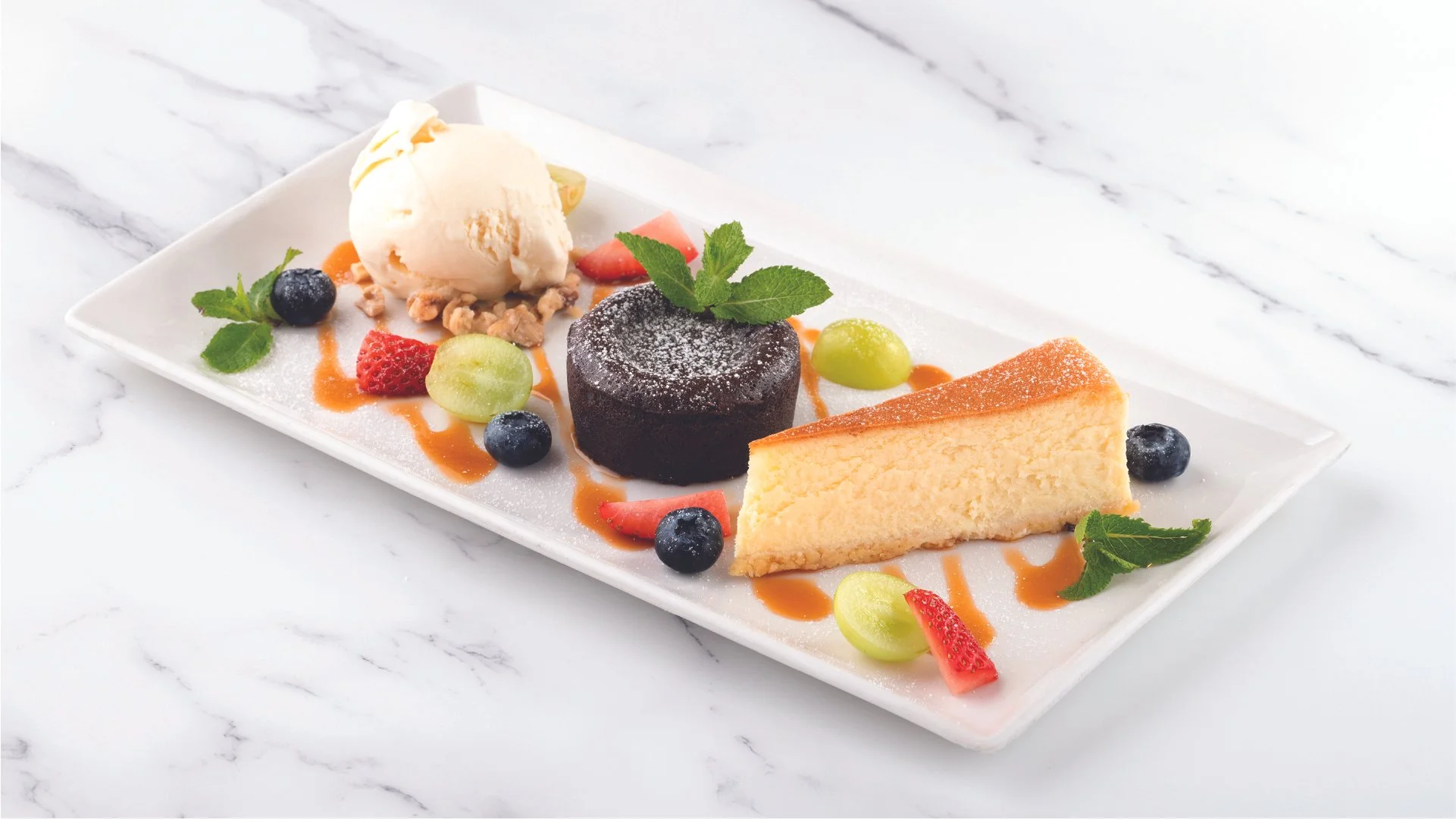 With homemade Tiramisu, MÖVENPICK ice cream & dessert of the day. Sprinkled with crushed pistachioDessert Platter Ⓝ